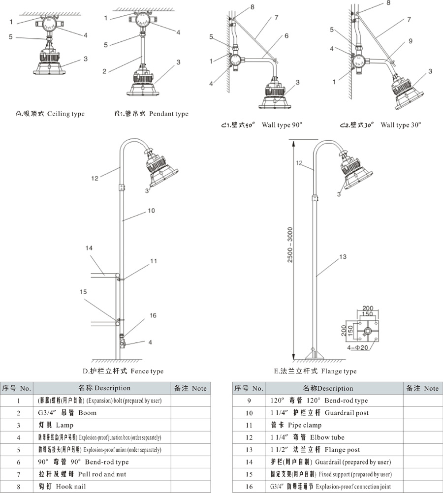 3、燈具出廠時均不帶電纜、如需配電纜請注明。